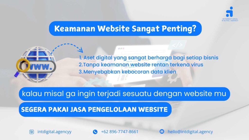 Dengan memanfaatkan jasa pengelolaan website profesional, Anda dapat memastikan website Anda aman dan bisnis Anda tetap berjalan lancar.